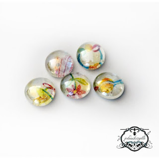 OdpowiedzUsuńMoje kaboszonki pochodza z BricoMarche(na dziale z dekoracjami) sa mniejsze i wieksze, róznokolorowe i przejrzyste. Niektóre mają około 3-4 cm i z pewnoscią nadawałby się na twoje "za duze" motywy.